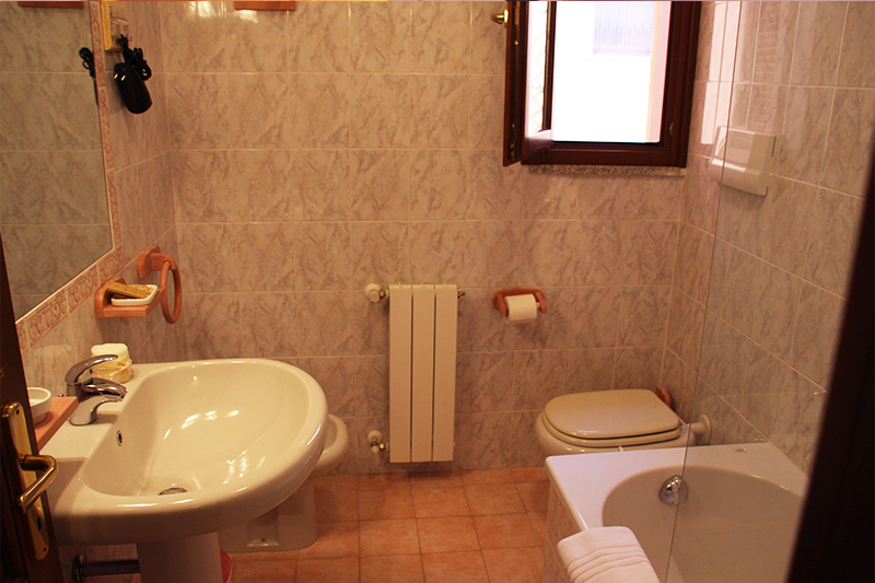 La Camera Standard comprende un letto matrimoniale, è finemente arredata e dotata di :  Tv, Wifi, Riscaldamento, Climatizzatore, MiniFrigo, Asciugacapelli, Cassaforte, Mensola, Fornitura di tutta la Biancheria  e un Uscita verso il giardino. Bagno privato con vasca.
